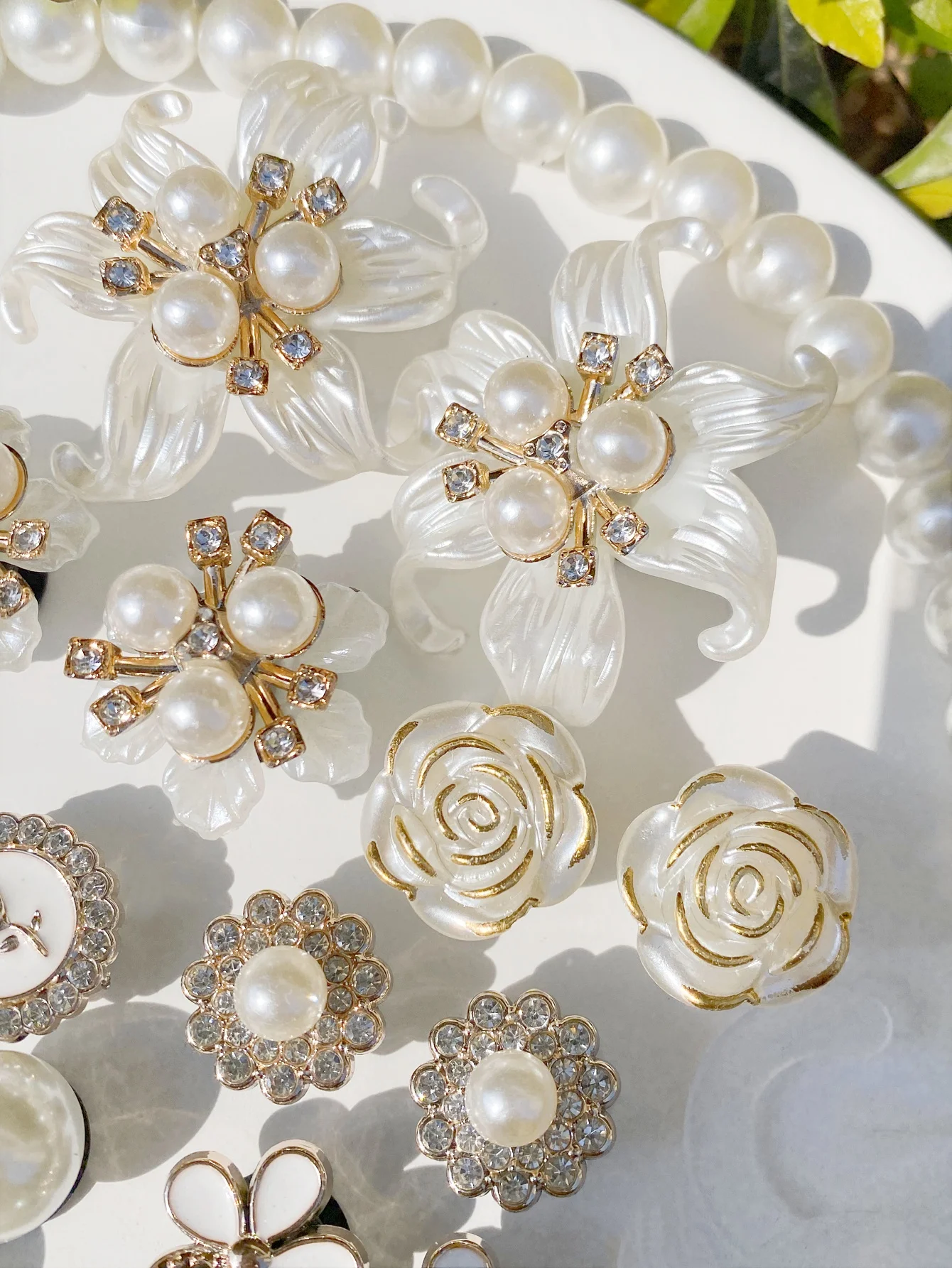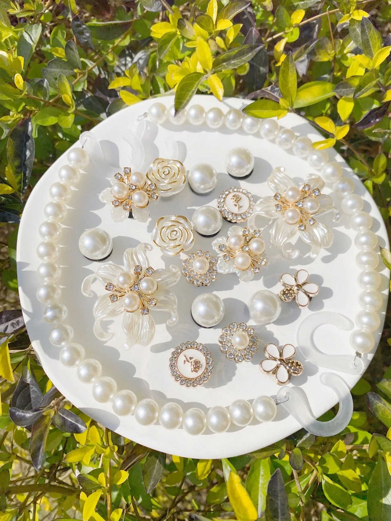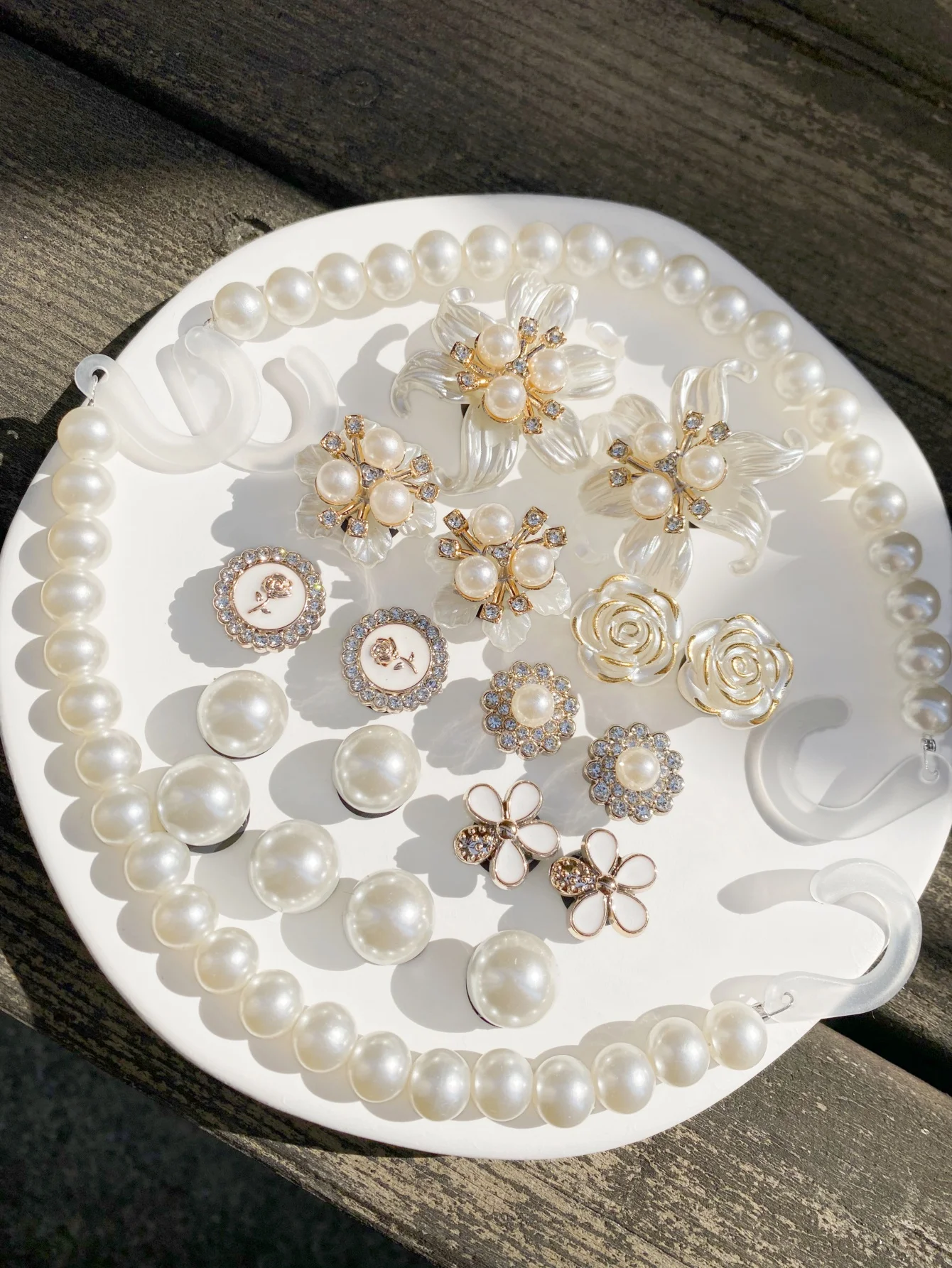 Este kit de acessórios decorativos é perfeito para personalizar babuches, sandálias e bolsas infantis, trazendo um toque delicado e elegante com flores e pérolas.